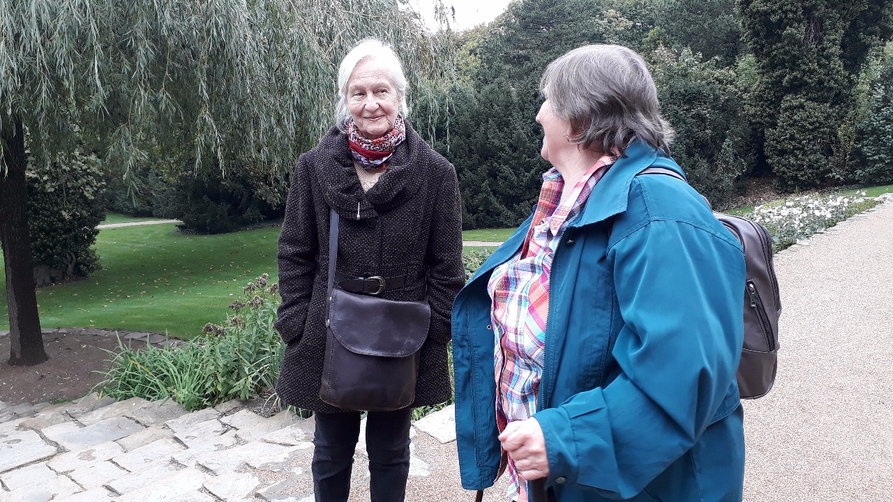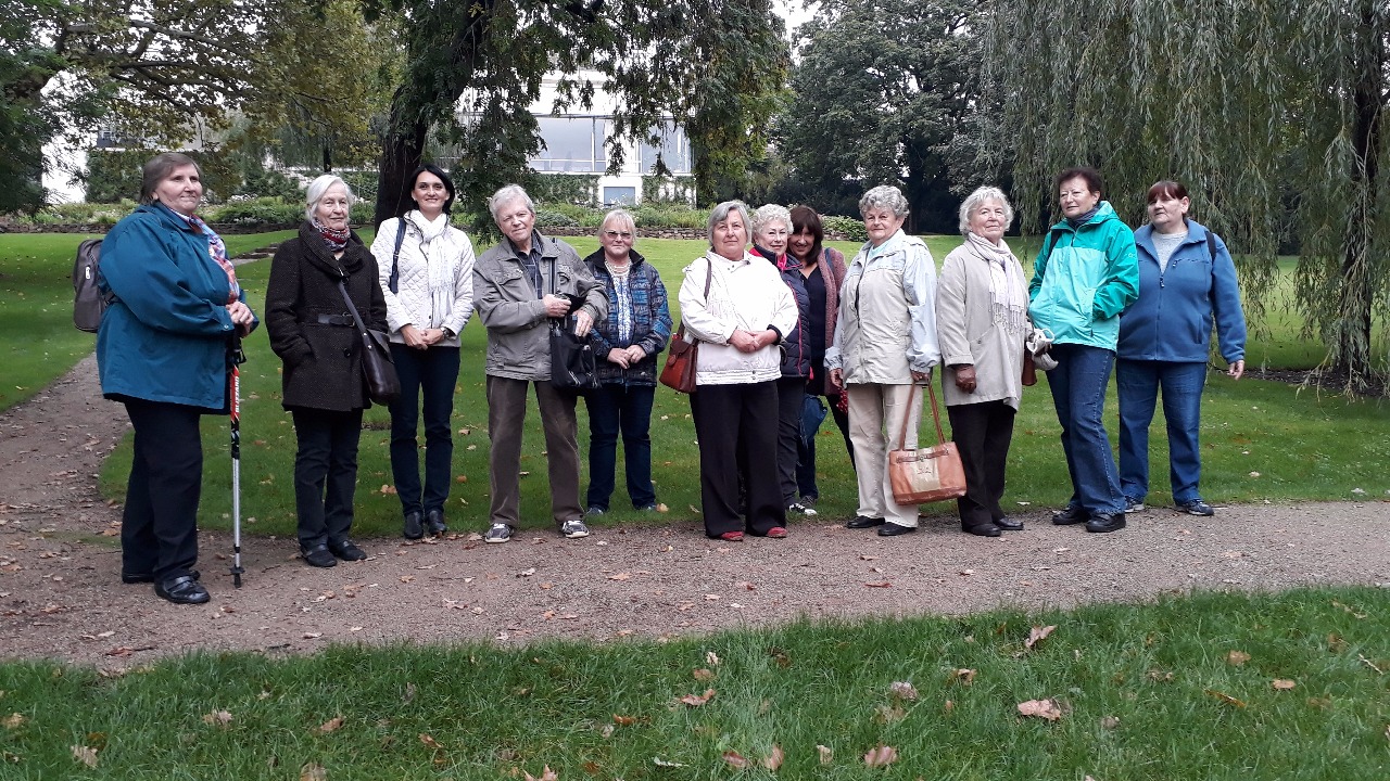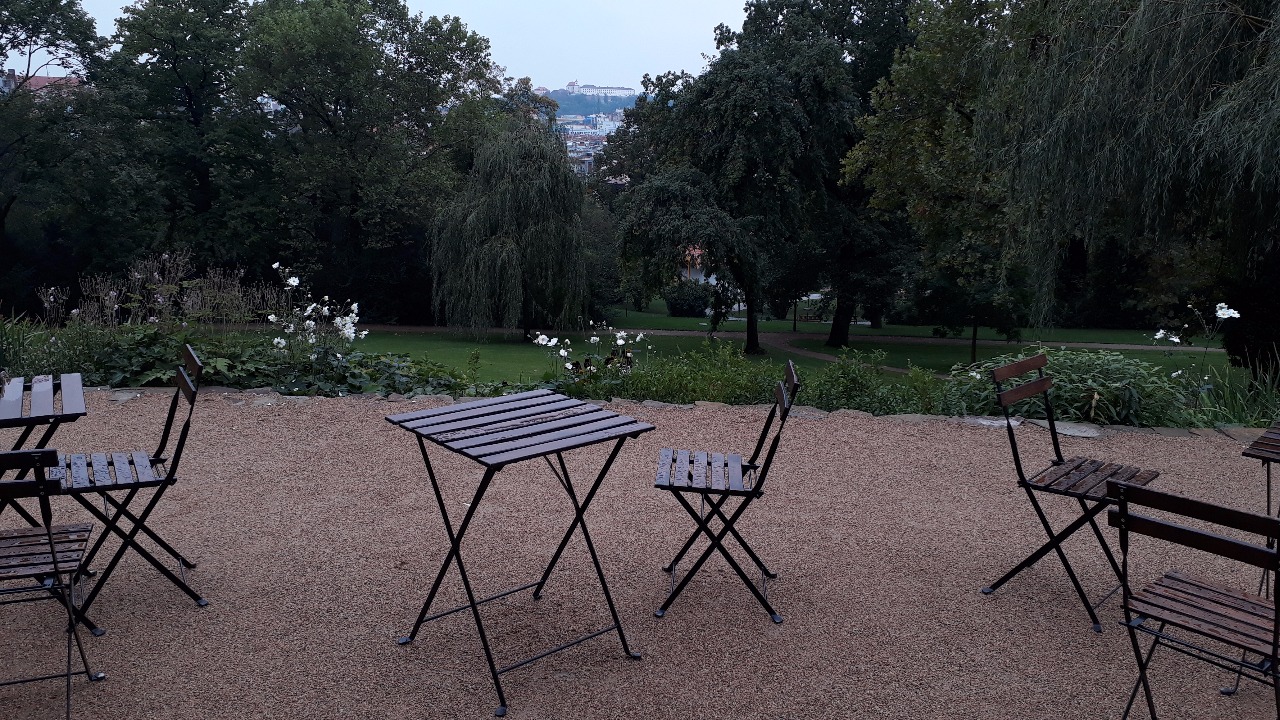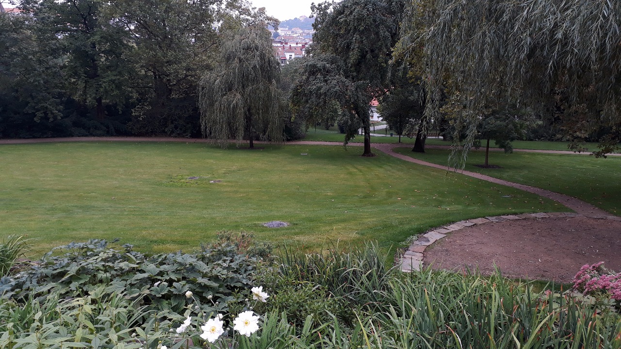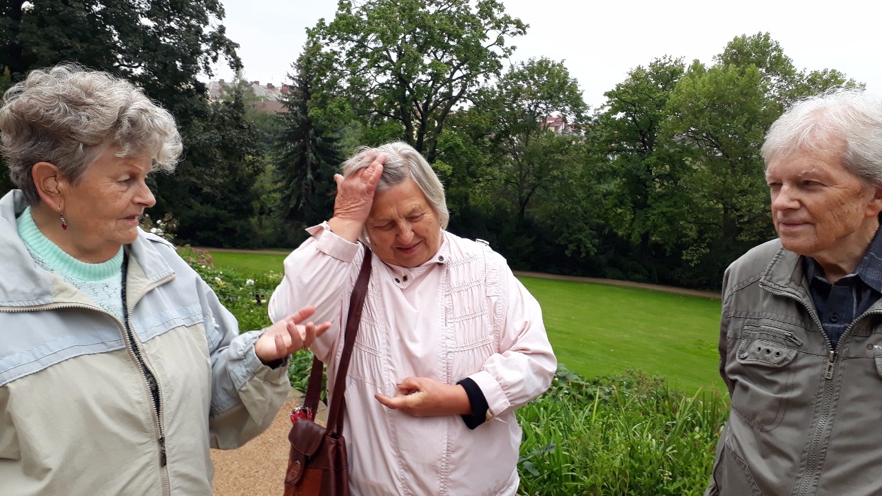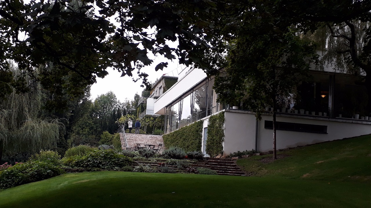 První prohlídka měla začít ve dvě hodiny. Ale pár účastníků mělo dorazit až na druhou prohlídku na půl třetí. Domluvili jsme se na zrušení prohlídky ve dvě, šli si prohlédnout zahradu, která sousedí se zahradou Low Beerovy vily, prohlédli si malou expozici v suterénu vily.