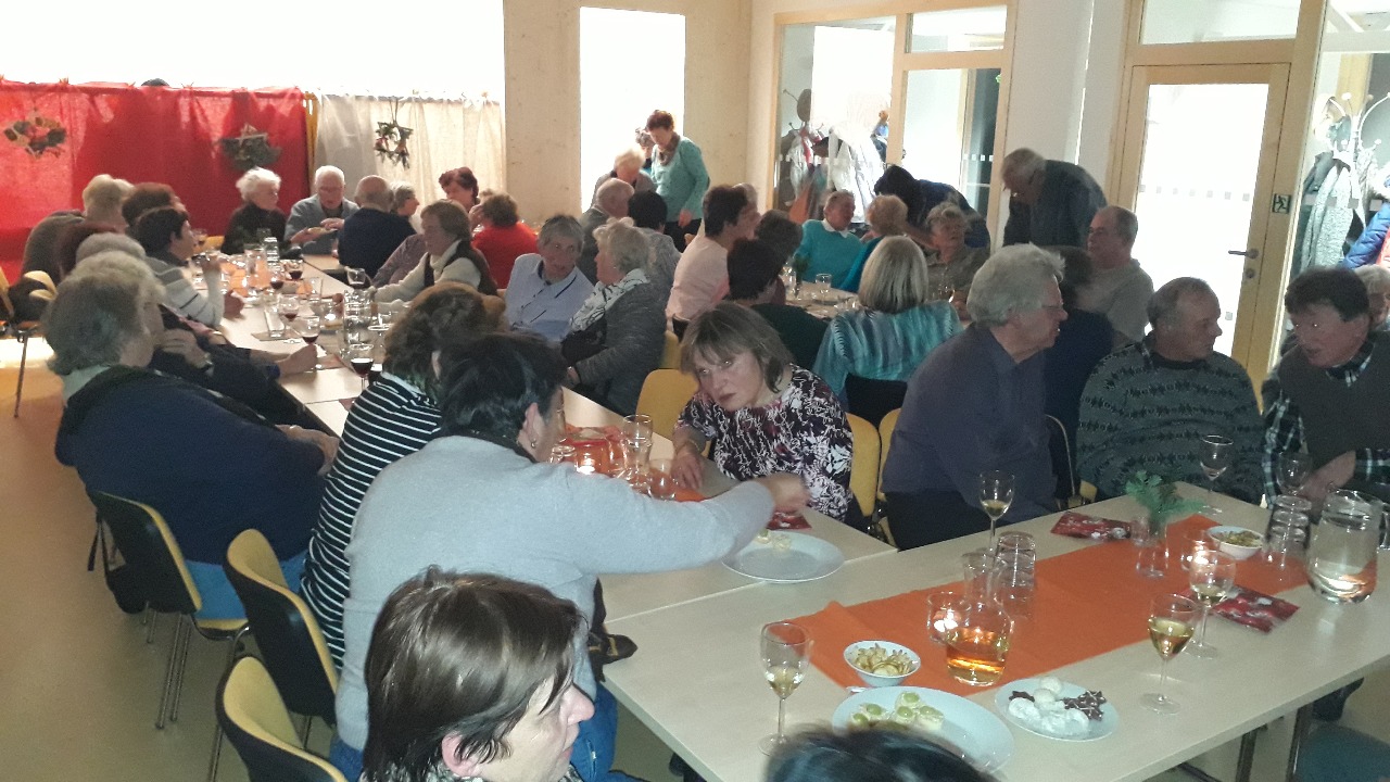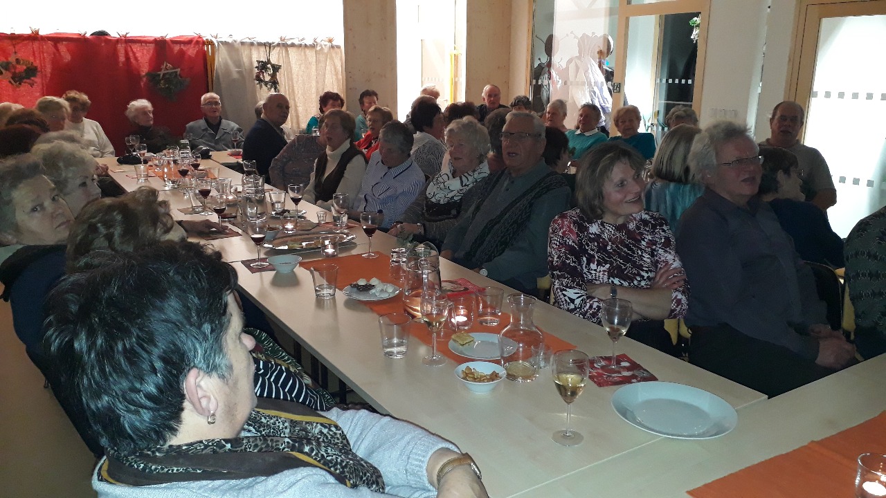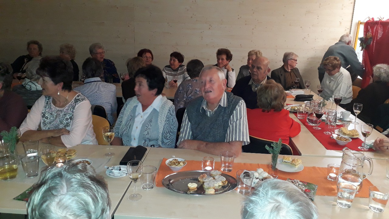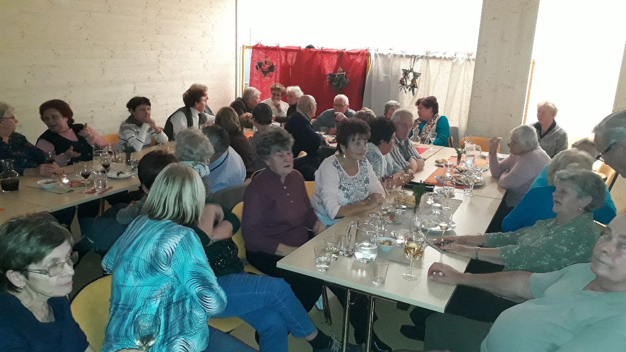 Již třetí předvánoční setkání seniorů proběhlo na začátku prosince, tentokrát v novém sále nad samoobsluhou. Sál, kde je možné usadit padesát příchozích, praskal ve švech. J Díky vybavení přilehlé kuchyňky, si senioři mohli pochutnat na víně, čaji a kávě ze skleniček a šálků a ne z papírových kalíšků, jak tomu bylo v minulých letech.